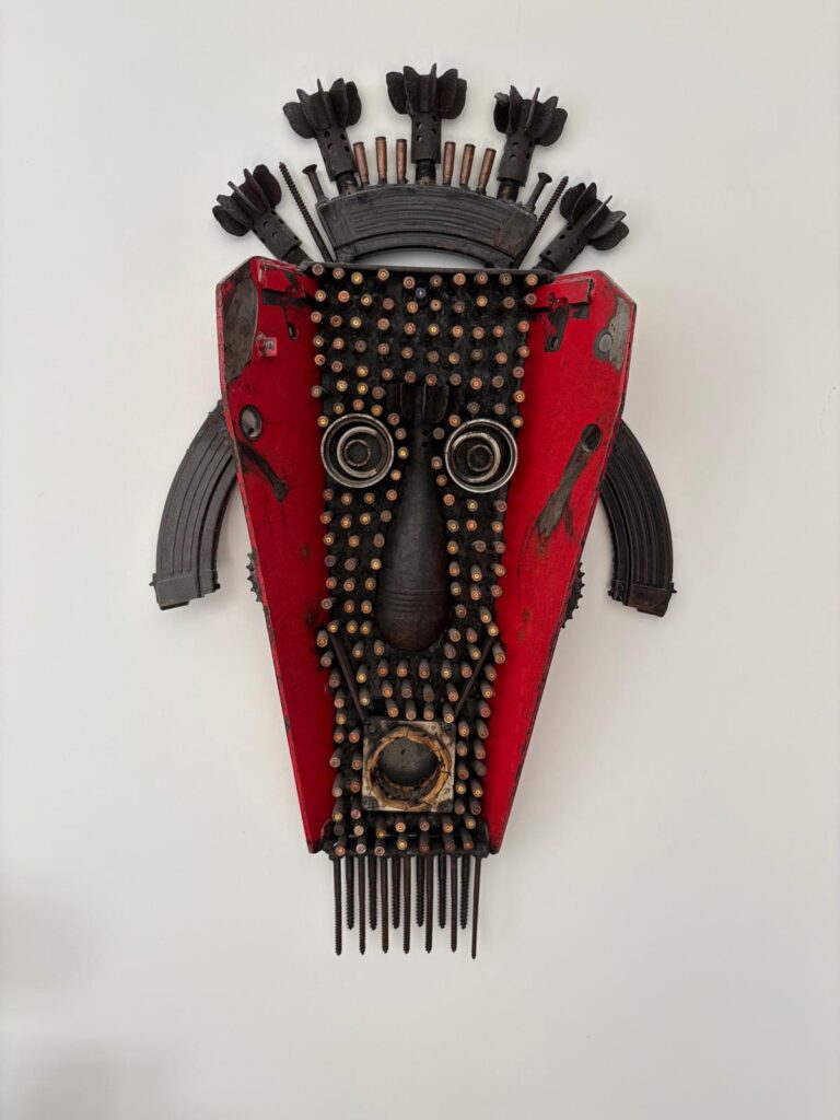 Dit masker van Gonçalo Mabunda uit Mozambique is gemaakt van kogels, gedeconstrueerde Kalashnikovs etc.