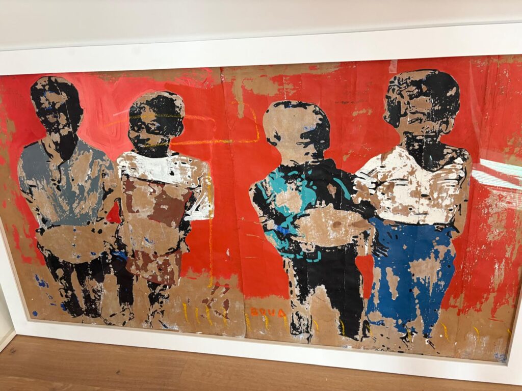 Het simpele karton waarmee dit knappe werk links van deze straatkinderen gemaakt is, geeft het werk extra kracht. De kunstenaar is Armand Boua uit Ivoorkust en dit was al te zien in Amersfoort.