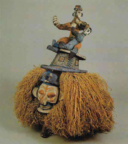 Yaka-maskers van het kholuka-type fungeren in het spel wanneer de geïnitieerde jongens uit het kamp komen. Deze zeer tot de verbeelding sprekende kleurrijke maskers worden opgezet of voor het gezicht gehouden en gedragen door een burleske danser uit de gemeenschap. De boven op het masker gemonteerde figuren kunnen velerlei vormen aannemen, van mensen tot dieren en van gebruiksvoorwerpen tot onderkomens of een combinatie en hebben niet zelden een koddige connotatie. In deze configuratie probeert het kind de pijp van zijn moeder te grijpen, een voorrecht van ouderen en niet andersom. In hun felgekleurde uitbeeldingen hebben de voorstellingen wel iets carnavalesks; muziek en gezang dat betrekking heeft op de uitbeelding dragen daar ook toe bij. Het masker is bijzonder vanwege de gave staat waarin het verkeert en de aanwezigheid van raffia. H. 80 cm.