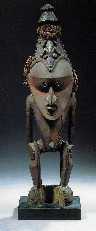 In het Ramu-Sepik benedenrivierengebied treffen we antropomorfe figuren aan die door hun specifieke weergave van onderdelen meteen herkenbaar zijn, maar waarover we tevens vrij weinig weten. Dit grote exemplaar van bijna 60