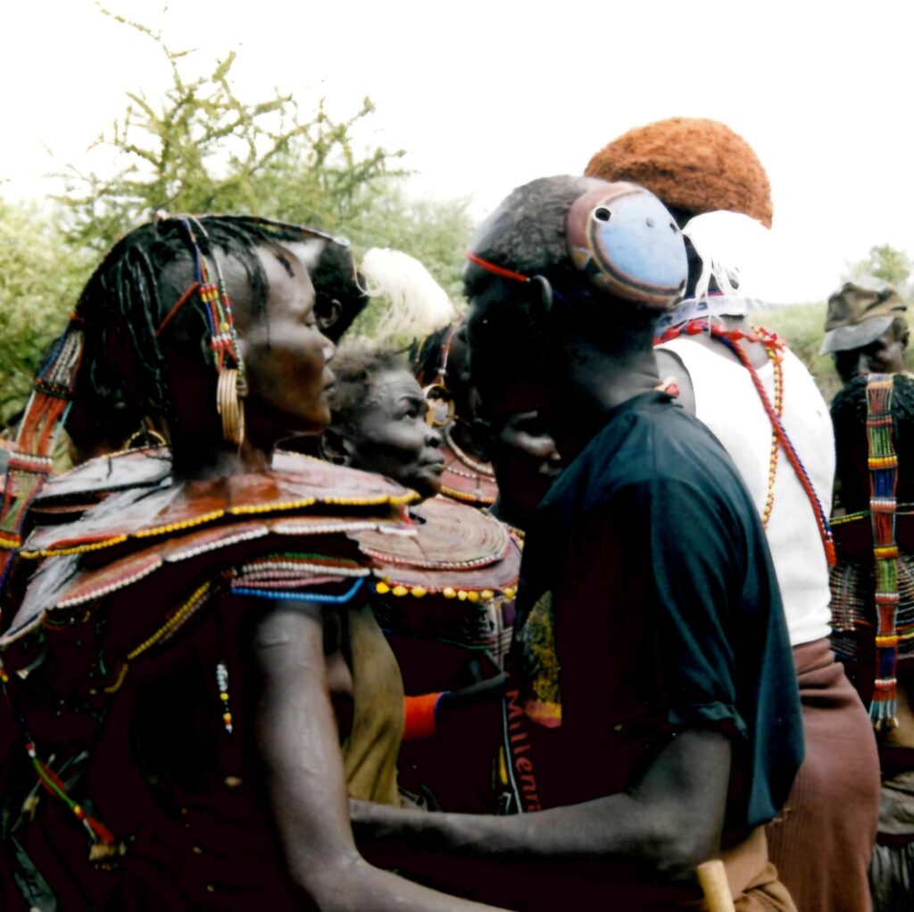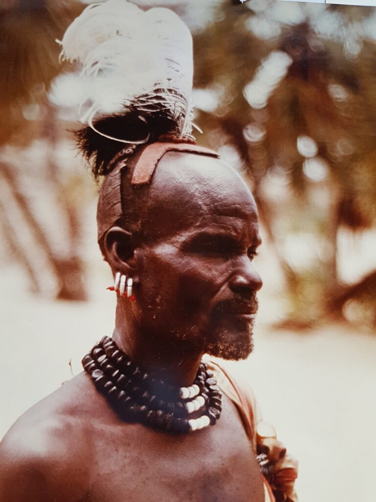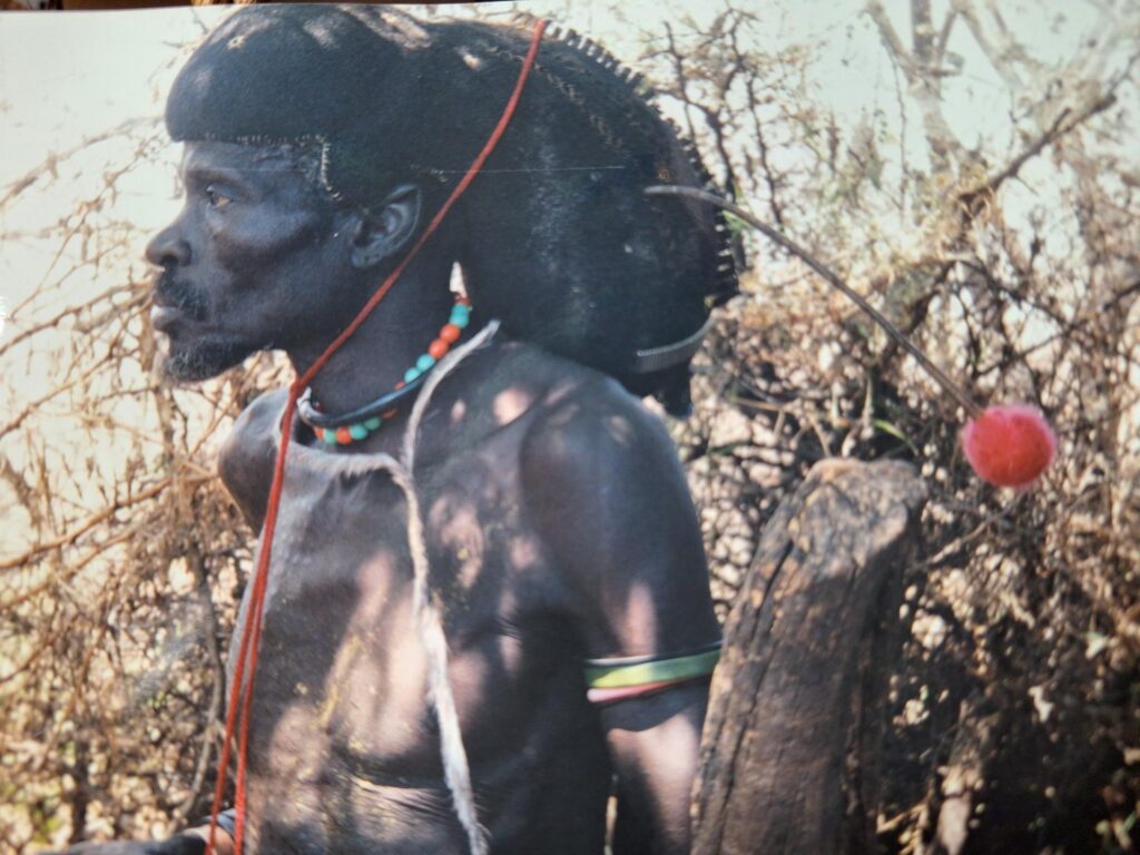 Sedert 1981 heb ik meerdere expedities ondernomen richting Kenia, Uganda, Zuid-Soedan en Ethiopië. Hierbij lag de focus op de studie en het verzamelen van voorwerpen uit de materiële cultuur van de nomadische veehouders uit deze regio. Hierbij is mijn bijzondere belangstelling uitgegaan naar een typisch hoofddeksel van deze nomaden, in de vorm van een al dan niet afneembare “ haar/kleikap “ voorzien van kleur en veders. De benaming “ haar/kleikap “ wordt gebezigd wanneer het gaat om een haarkap die tevens voorzien is van kleibedekking. Anders wordt eerder het woord “ haarkap “ gebruikt. (Afbeelding 1)