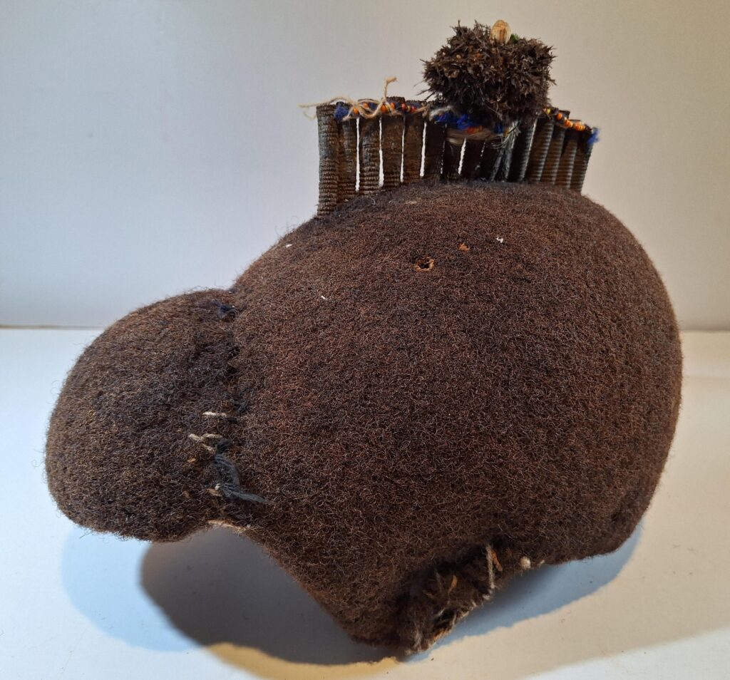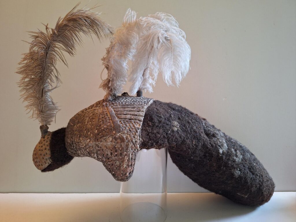Even terugspoelen. Tijdens mijn expedities naar Kenya vanaf 1981 kwam ik in 1995 in de gereputeerde kunstgalerij Watatu in Nairobi gelegen achter het Stanleyhotel, oog in oog te staan met een mooi afgewerkte haar/kleikap van de Karamojong en ik heb deze toen aangeschaft en gekoesterd als een zeldzaamheid. Enkele jaren later heb ik in dezelfde galerij en ook in galerij Grüsenmeyer op de Zavel in Brussel nog een exemplaar van dezelfde makelij en kwaliteit kunnen vinden.
