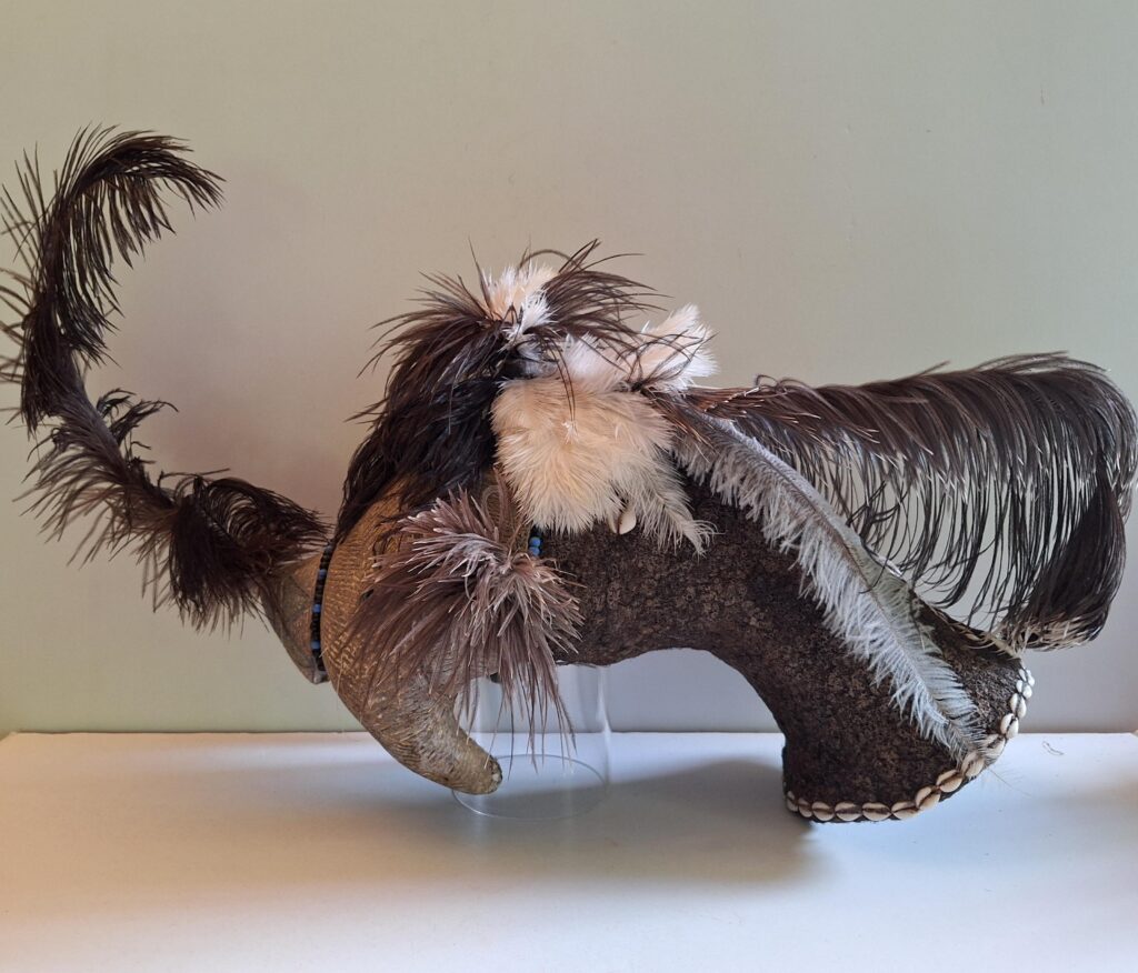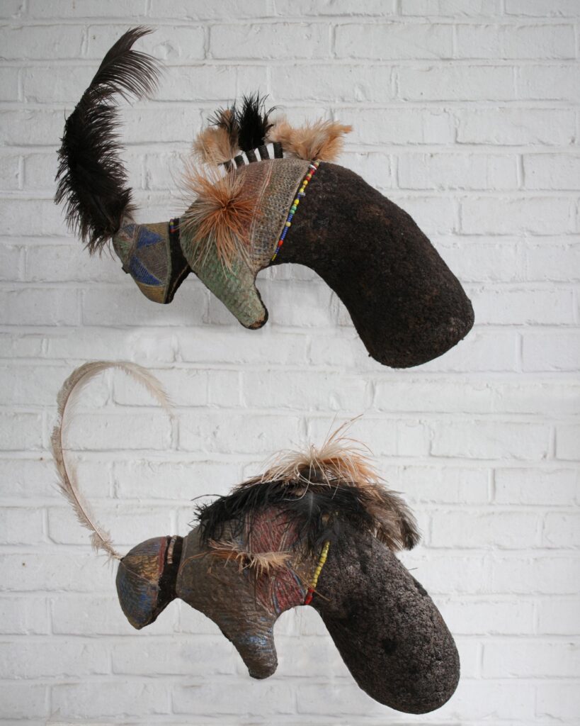 Uiteraard trachtte de lokale bevolking het verbod te omzeilen, met name door de aanmaak van afneembare haar/kleikappen, geïnspireerd op de oude modellen. In feite bestond zulk afneembaar hoofddeksel uit twee delen, verwerkt op een hol frame van ijzerdraad : vooraan een gestileerd hoofd van een rund op basis van gekleurde klei, vaak versierd met glaskralen, en achteraan een hol volume vervaardigd van ingevlochten mensenhaar gefixeerd op het frame. In het voorste gedeelte kon men het hoofd steken, als een soort opzetmasker. Deze afneembare haar/kleikappen werden ingevolge het verbod stiekem gedragen tijdens rituele aangelegenheden en ook in meer afgelegen streken, waar er minder controle van de overheid was. (Afbeelding 3-10)
