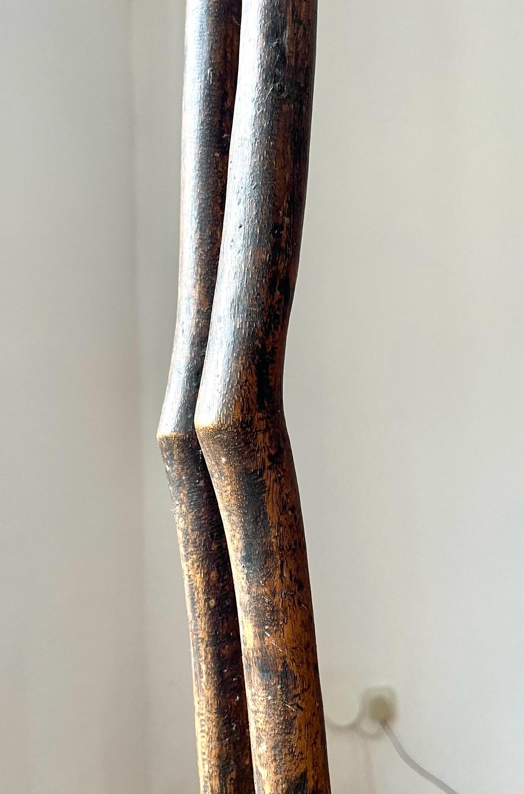 Het waren voorouderbeelden van de Nyamwezi (mensen van de maan of uit het westen). De Nyamwezi wonen in een groot gebied in het westen van Tanzania,onder het Victoria meer tot aan Tabora. Ook de Sukuma, Kimbu, Konongo, en Sumbwa maken deel uit van de Nyamwezi sprekende volken. Men spreekt ook over chef staven, maar of de chefs deze in een ceremonie inzetten is niet bekend. Het Linker beeld is het fraaist en helemaal intact met een diepbruin, glanzend patine. Het rechter beeld is lichter en de rechter onderarm is gerestaureerd. Het hoofd van het beeld zonder onderarm vertoonde voor mij typisch Sukuma-kenmerken en heeft kleine gele kraaltjes als ogen.