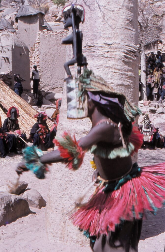 Dogon maskers zijn in essentie de vorm waarin de bush het dorp binnenkomt om het dorp weer kracht te geven na het overlijden van veel ouderen, met hun wijsheid en spirituele kracht, een interpretatie die spoort met wat we weten van maskerrituelen in andere West-Afrikaanse groepen.