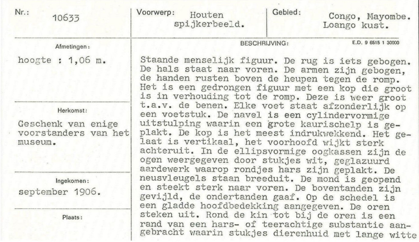 Binnen het Wereldmuseum is er vervolgens een narratief gecreëerd om over de nkisi te spreken, wat door de jaren heen werd aangepast en bijgeschaafd. Met aanduidingen variërend van fetisj tot spijkerbeeld en nkisi; van weinig context tot duiding over een eventuele maker en aandacht voor de ontstaansgeschiedenis. Anno 2025 staat de nkisi tentoongesteld in de vaste opstelling