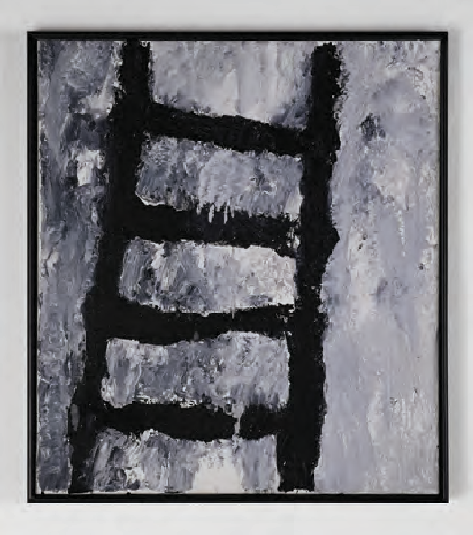 Rechts: Armando, Die Leiter 9-2-1992, olieverf, linnen, 70 x 80 cm.