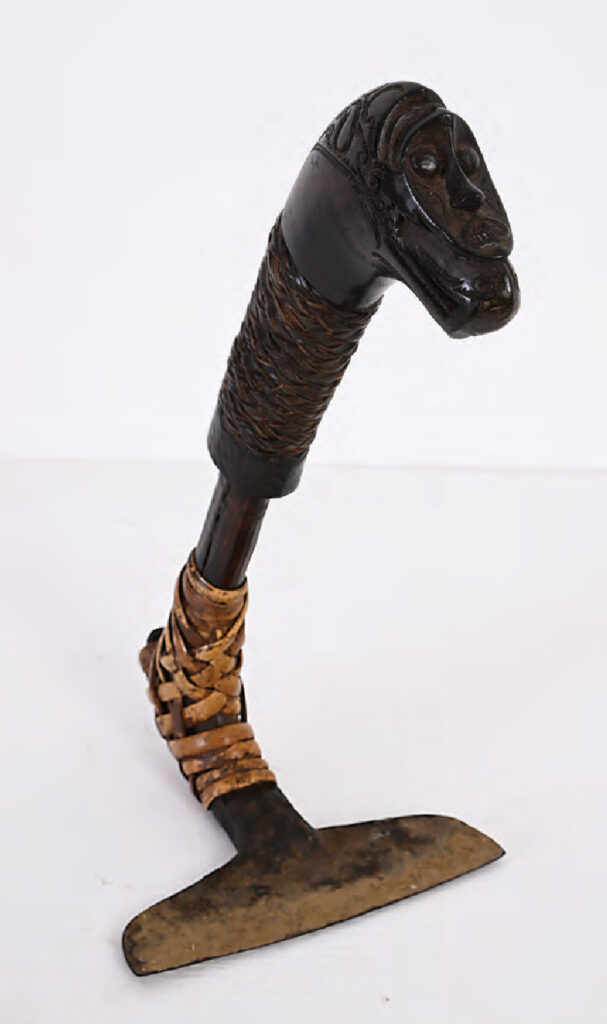 Eveneens uit Indonesiƫ komt een vroeg 20e eeuwse ceremoniƫle hak, een landbouwwerktuig van de Kenyah-Kayan Dayak, een volk dat leeft in Centraal-Borneo. De handgreep stelt een Aso-kop voor met daarboven een prachtig uitgesneden antropomorf gelaat.