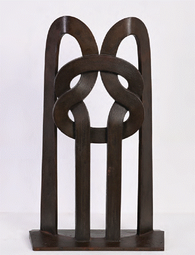 gebruik en kochten een fraai stalen beeld dat een platte knoop verbeeldt. De knoop staat bij Tajiri voor verbondenheid, omarming, harmonie, maar evengoed voor een probleem, voor iets dat ontward moet worden.