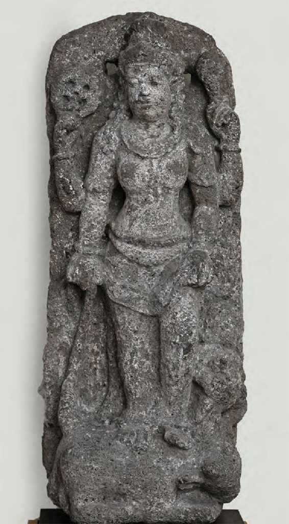 Durga is de hindoe-moedergodin. Haar naam betekent: de ontoegankelijke. Ze is de belichaming van de woede van de goden, onoverwinnelijk in haar strijd tegen de mannelijke demonen die de wereldorde bedreigen. Durga is autonoom, maagd en āzij die haarzelf toebehoortā. Enkele jaren later kochten ze op de TEFAF bij Polak ook een prachtig Batak object, een zogenaamde buli-buli, een container van bewerkte buffelhoorn, waarin de Datu, de Batak priester, zijn geneeskrachtige substantie bewaarde.